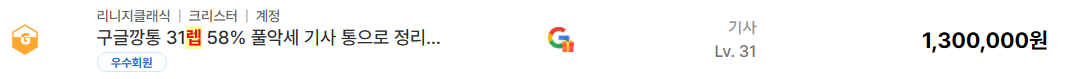 이 구간은 단순 육성 비용이 아니라 시간 + 강화 리스크 + 장비 확보 난이도까지 반영된 가격이다. 실제 거래 흐름을 보면 이런 고스펙 계정은 매물 자체도 적고, 올라오면 빠르게 거래되는 편이다.