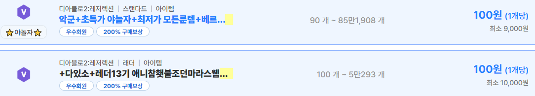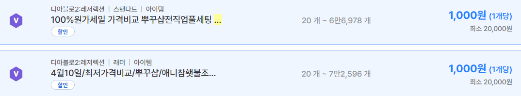 먼저 현재 거래되고 있는 디아블로2 레저렉션 아이템 사례를 보면 스탠다드 기준으로 자룬 베르룬 로룬 같은 핵심 룬들이 개당 100원에서 1000원 수준까지 다양하게 형성되어 있다 실제 거래된 내용들을 보면 최소 구매 금액 8000원부터 20000원 이상까지 조건이 붙어 있는 경우가 많고 대량 구매 시 가격이 낮아지는 구조다 특히 뿌꾸샵이나 다있소 같은 판매자들은 전직업 풀세팅 구성까지 포함해 판매하고 있어 초보 유저들의 접근성을 높이고 있다