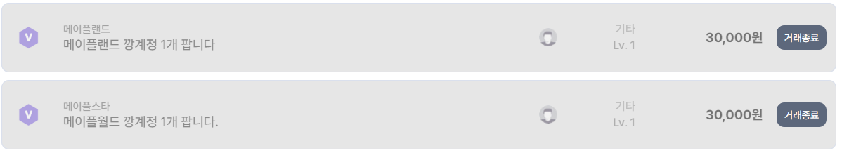 레벨 1의 메이플랜드 깡계정은 2만5천 원~3만 원 선에서 매우 안정적으로 거래 종료되고 있다. 사용 이력 없음, OTP 제공 여부 정도만으로도 충분히 수요가 형성되며, 신규 유저나 다계정 육성을 원하는 유저층에서 꾸준한 거래가 발생하고 있다.